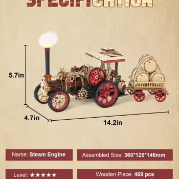 3D Wooden Steam Locomotive Puzzle Kit with Motor – Retro Train Model for Adults